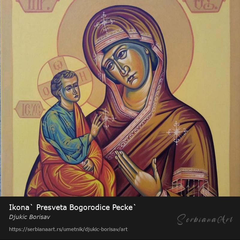 Ikona Presvete Bogorodice Pecke je raljena po ikoni koja se nalazi u peckoj patrijasiji po kojoj je dobila ime. Slikana je akrilnim bojama na prepariranom medijapanu. Ikonu mozete naruciti u svim dimenzijama i reprodukcijama.