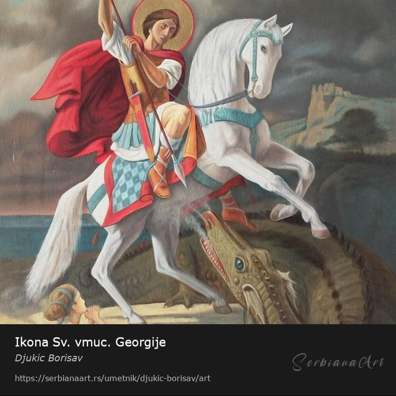 Ikona je oslikana uljanim bojama na platnu koje je zategnuto na blind rad. Ikona je radjena po reprodukciji. Ikone se naravno mogu narucivati i prema mojoj ili Vasoj reprodukciji.Podelite i promovišite ovo delo