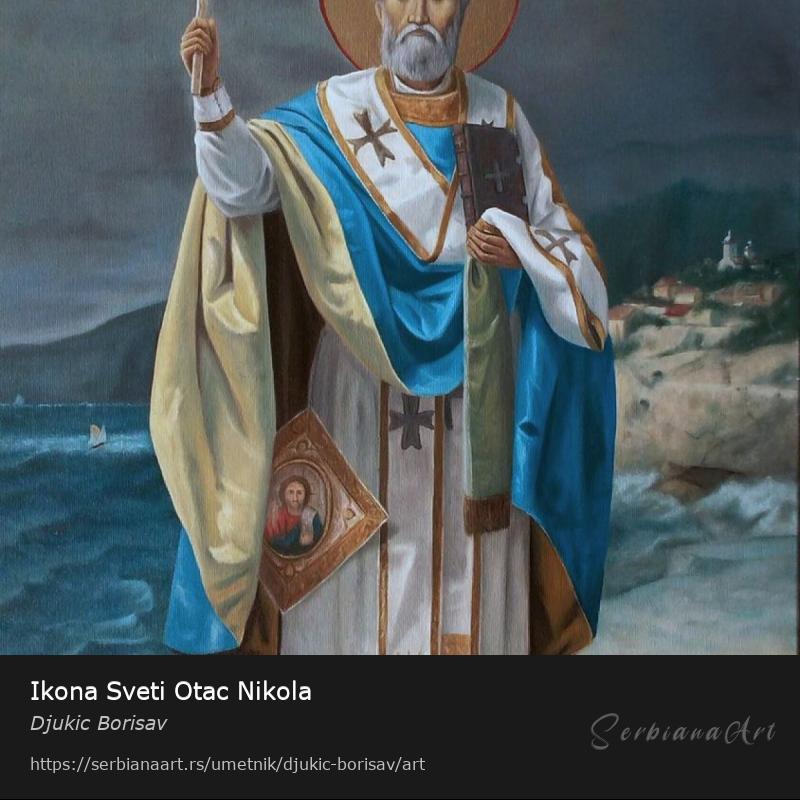 Ikona je oslikana uljanim bojama na platnu koje je zategnuto na blind rad. Ikona je radjena po reprodukciji. Ikone se naravno mogu narucivati i prema mojoj ili Vasoj reprodukciji.Podelite i promovišite ovo delo