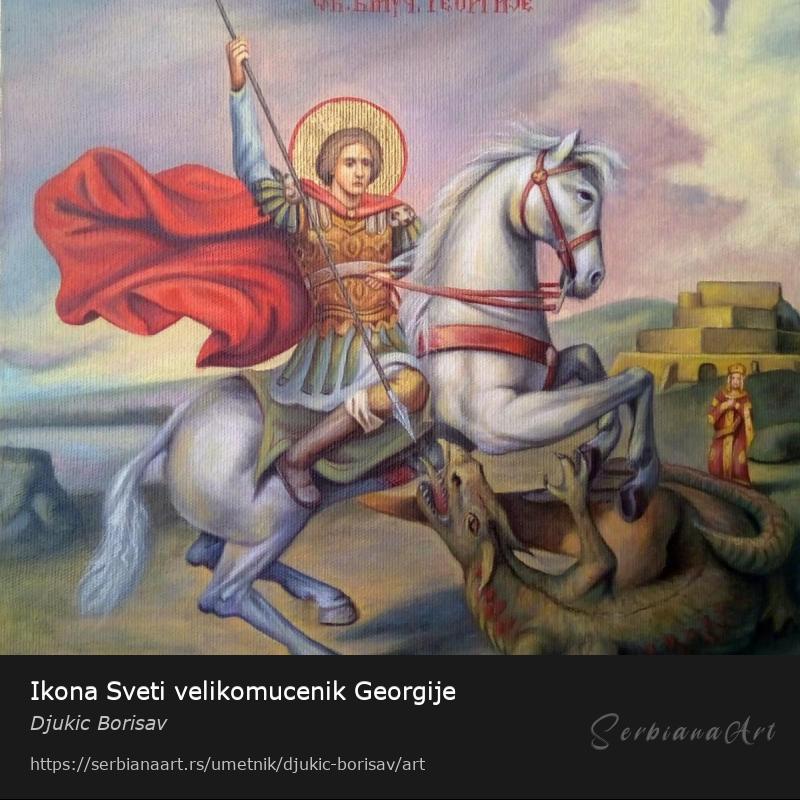 Ikona je oslikana uljanim bojama na platnu koje je zategnuto na blind ram, naravno moze se poruciti ikona i po vašem predlošku.