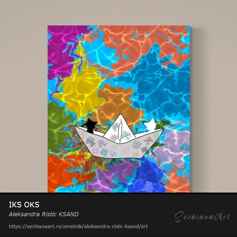 Bela i crna mačka putuju u krhkoj papirnoj lađi, koja plovi vodom, dok je njena površina prekrivena igrom "Iks-Oks". Lađa, koju nosi vetar i talasi, simbolizuje prolaznost života i nepredvidljivost naših puteva. "Iks-Oks" igre koje igramo, u kojima ponekad pobedimo, ponekad izgubimo, a nekad je nerešeno bez pobednika, ali na kraju nismo mi ti koji kontrolišemo krajnji ishod. Vetar, poput sudbine, vodi lađu prema njenoj sudbini, prikazujući da je tok života oblikovan silama izvan naše kontrole. Ovaj rad odražava prolaznost postojanja, besmisao pokušaja da kontrolišemo život i prihvatanje nepredvidivog toka vremena i sudbine, dok je najvažnija ljubav koja nas vodi kroz sve – ljubav prema svim igračima u našem životu.