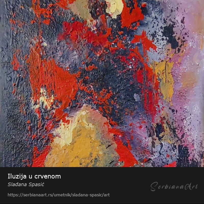 Volim galerije. Izložbe. Kreativnost autora. Sve što je vezano za autentičnost i iskrenost u izražavanju sebe. Moje slike nemaju opuse,svaka za sebe je posebna pričazato što ih radim u dahu, u naletu emocije i inspiracije i svaka odražava moje trenutno stanje, osećanje, viziju ili sećanje. Umetnik Slađana Spasić (Srbija).