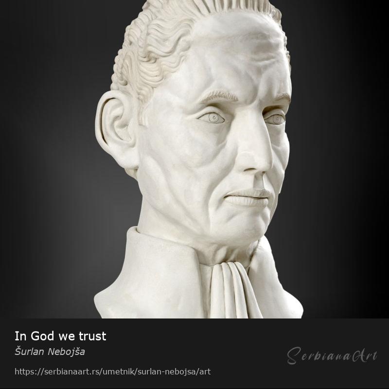 Naziv skulpture: ''In God we trust'' Materijal: Glina Dimenzije: 27 x 25 x 47 cm Skulptura je izradjena od gline, osusena je bez pecenja i nije otporna na vlagu.Podelite i promovišite ovo delo