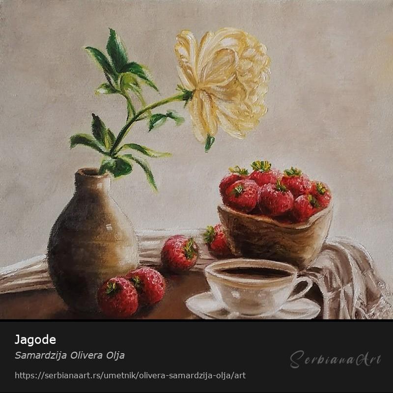 Zivim i radim u Novom Sadu. Studirala sam Gradjevinski fakultet, ali je slikanje oduvek bilo moj hobi, a aktivno slikam od 1995. godine. Imala sam tri samostalne izlozbe i ucestvovala sam na vise kolektivnih. Sve slike su radjene tehnikom ulje na platnu. Moje radove mozete videti na: olja-art.comSlike radim i po narudzbini, tako da mozete sami odabrati motiv i velicinu slike. Slike ne saljem u inostranstvo.Umetnik Samardzija Olivera Olja (Srbija).