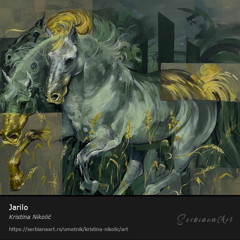"Jarilo", 160x140, Slovensko božanstvo povezano sa dolaskom proleća, često je prikazano kao Bog na konju sa pšenicom.