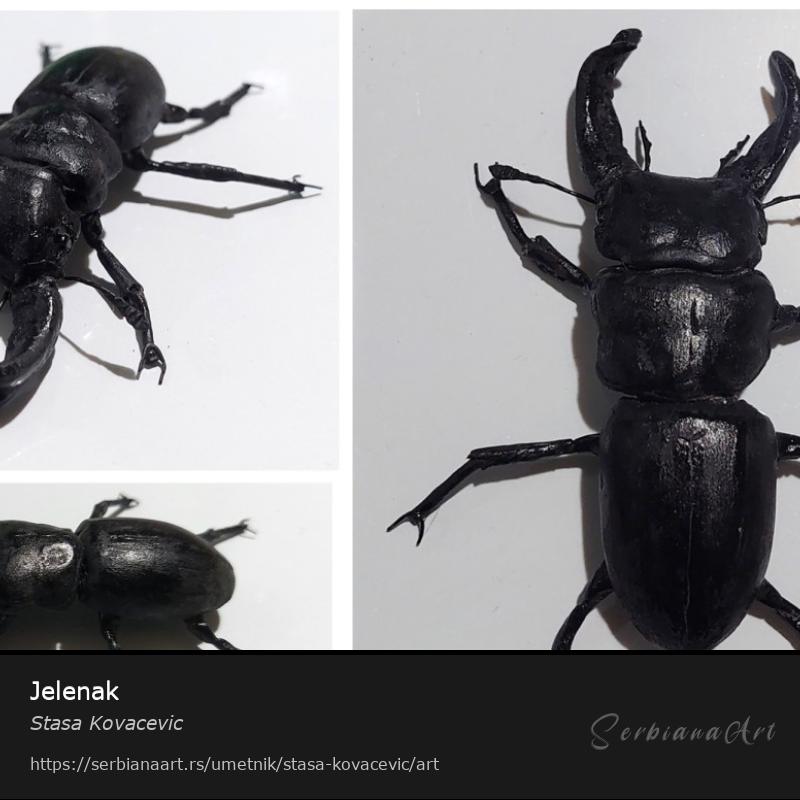 Ručno pravljen Jelenak od das mase, i metalne žice. Ime vrste je Dorcus hopei, i dužina iznosi 6.5cm.