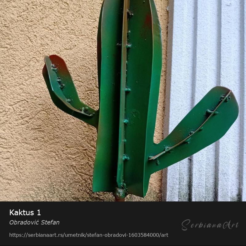 Skulptura kaktusa od metala, ofarbana. Stoji na svom postolju takođe od metala i rotira se. Kada se skine sa postolja može se instalirati u dvorište kao jedinstvena dekoracija. Slanje u zemlji je Postexpresom, AKS, mogućnost i organizovanog transporta uz doplatu i prethodni dogovor.Podelite i promovišite ovo delo