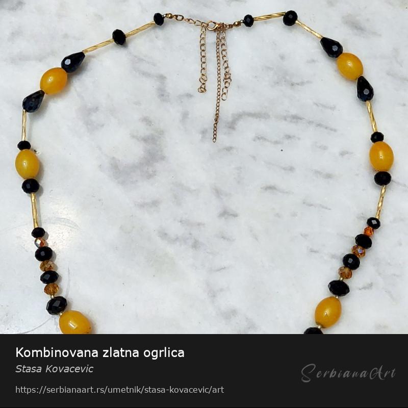 Ručno izrađena ogrlica od ćilibara, češkog kristala sa dodacima lanac i kopča pozlata od nerđajućeg čelika.