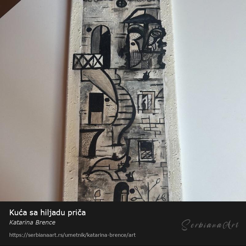 Visoka kuća sa više spratova pruža se duž platna, kao čuvar starih priča. Svaki prozor nosi svoju tajnu, a nežna paleta boja priziva mir. Akril na platnu, 60×20 cm, zaštićena za trajnu postojanost.