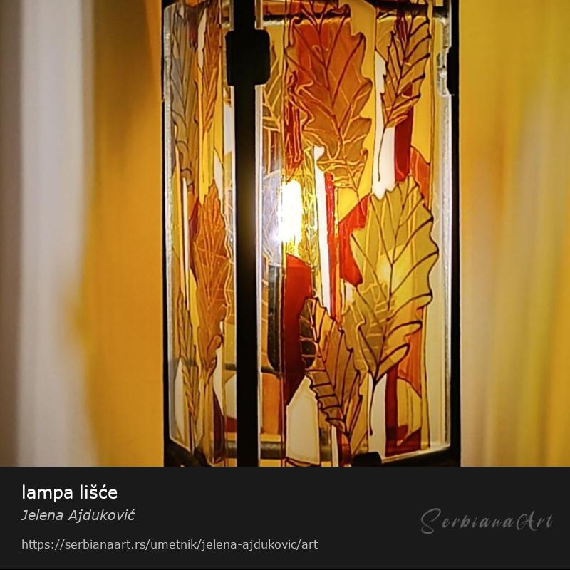 Unikatna lampa,kombinacija kovano gvožđe-staklo oslikano u vitraž tehnici.
