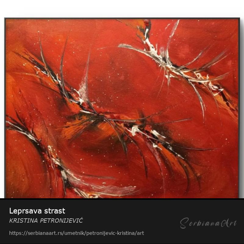 Komunikolog, slikarstvom se bavim preko deset godina. Slikarski pravci abstrakcije i modernost slikarstvo u toplim bojama koje podjednako ukrašavaju dom ili poslovni prostor. Na stotine urađenih slika, zadovoljnih poklonika slikarstva jesu uspeh i satisfakcija koja motiviše za dalji rad. Boje i pokreti su život.Umetnik KRISTINA PETRONIJEVIĆ (Srbija).