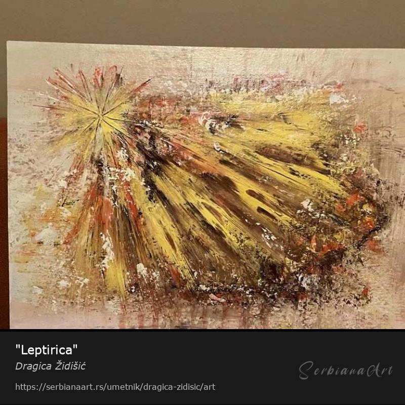 Iako je po vokaciji advokat sa vrlo ozbiljnom biografijom svog zvanja ona je i slikarka. Nije baš često da se isprepliću ovako dva, na prvi pogled oprečna zanimanja, ali ona je baš tu suprotnost povezala maestralnim koloritom ozbiljnosti svog primarnog poziva i umetnosti u kojoj njena svaka slika progovara kosmičkom energijom oslikanom na platnu. Iako je slikarka amater, njena dela o njoj najviše govore a o čemu ćete se najbolje uveriti sami. Umetnik Dragica Židišić (Srbija).