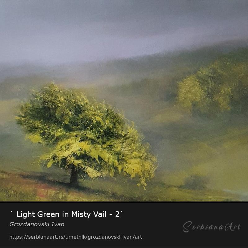Original artwork description: " Light Green in Misty Vail - 2 ".....Painted with expressive moves.......with pallet knife and with a brush..... I'm giving all best, to be represent the true colors of the paintings in the photos, but sometimes you can see a little difference in tone.. I take good care packing my art, so it comes to you in the great shape. This work of art was made on professional Italian canvas 380 gr / m2 Note !!! The painting on the wall of the room is not in true scale....!!!! All my artwork is original !!! Materials used: Acrylic ( Liquitex)..... on the end covered with a satin coat of varnish, to protect it for the UV and dustPodelite i promovišite ovo delo