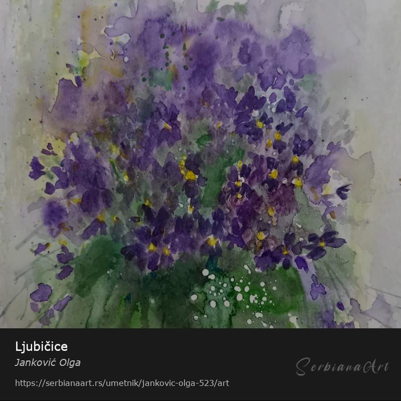 Akvarel Ljubičice slikan na 250gr Fabrijano papiru.
