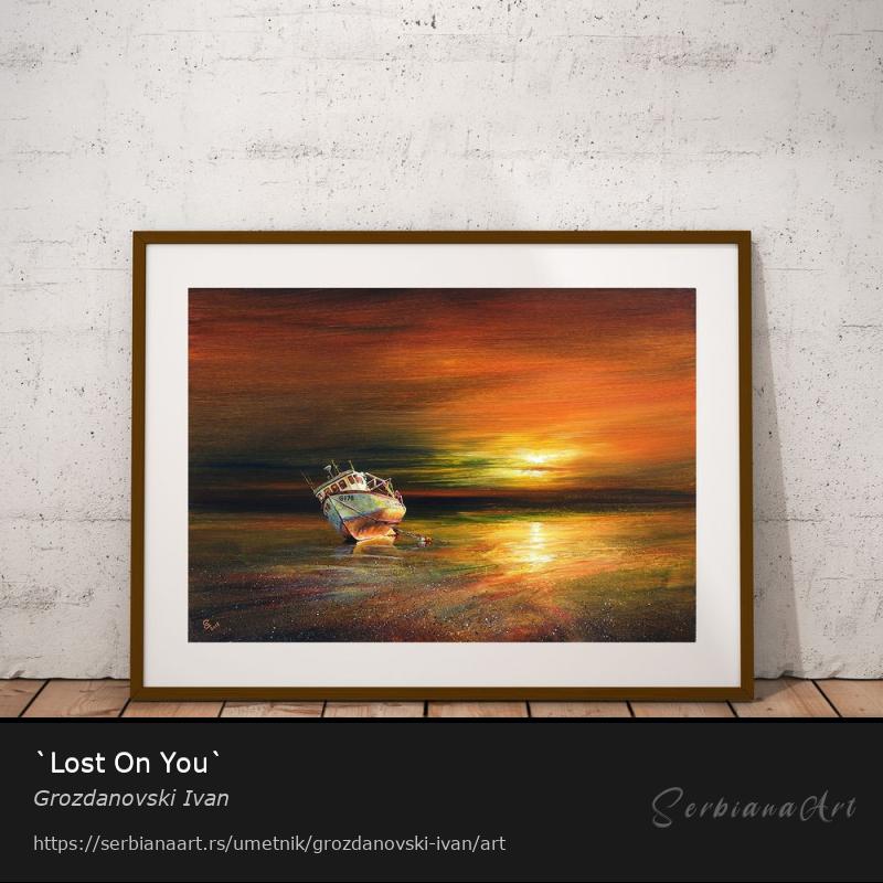 Artist's description: "Lost On You".....Impressionistic style....... ....Painted with expressive moves...........with a lot of emotion!!!... dim: W70xH50cm I'm giving all best, to be represent the true colors of the paintings in the photos, but sometimes you can see a little difference in tone.. I take good care packing my art,so it comes to you in the great shape. Note !!! The painting on the wall of the room is not in true scale....!!!! All my artwork is original !!!! Lost On You: When you get older, plainer, saner Will you remember all the danger We came from? Burning like embers, falling, tender Longing for the days of no surrender Years ago And will you know So smoke ’em if you got ’em Cause it’s going down All I ever wanted was you I’ll never get to heaven Cause I don’t know how Let’s raise a glass Or two To all the things I’ve lost on you Tell me are they lost on you Just that you could cut me loose After everything I’ve lost on you Is that lost on you? Is that lost on you? Baby, is that lost on you? Is that lost on you? Wishin’ I could see the machinations Understand the toil of expectations In your mind Hold me like you never lost your patience Tell me that you love me more than hate me All the time And you’re still mine So smoke ’em if you got ’em Cause it’s going down All I ever wanted was you Let’s take a drink of heaven This can turn around Let’s raise a glass Or two To all the things I’ve lost on you Tell me are they lost on you? Just that you could cut me loose After everything I’ve lost on you Is that lost on you? Is that lost on you? Baby, is that lost on you? Is that lost on you? Let’s raise a glass Or two To all the things I’ve lost on you Tell me are they lost on you Just that you could cut me loose After everything I’ve lost on you Is that lost on you? Is that lost on you? Materials used: Acrylic ( Liquitex)..... on the end covered with a satin coat of varnish, to protect it for the UV and dustPodelite i promovišite ovo delo