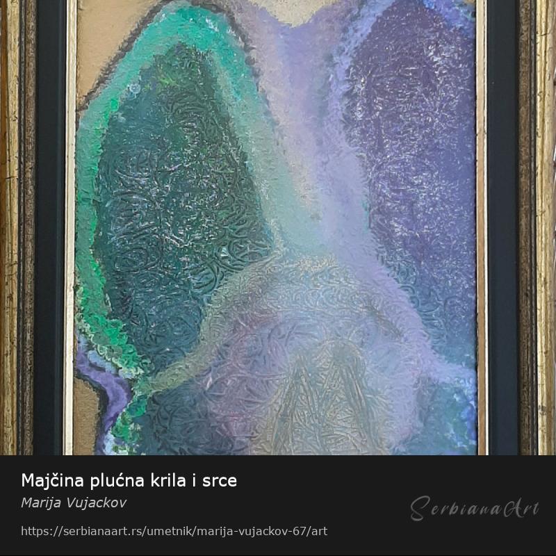 Akril na platnu sa slikarskim šljokicama i sjajem. Uramljena i stavljeno antirefleks staklo.Podelite i promovišite ovo delo
