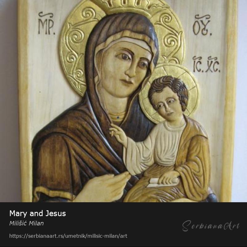 Korišten materijal za izradu; drvo lipa,oreoli pozlaćeni 23 karatnim zlatom, stakleni cirkoni i za toniranje orahov bajc i šelak.Podelite i promovišite ovo delo