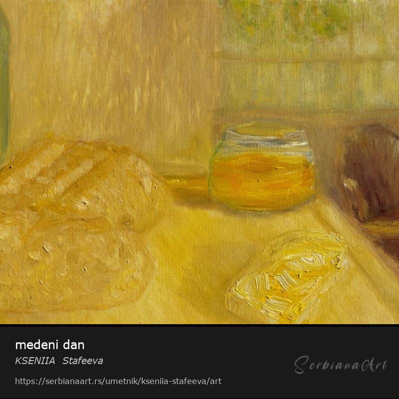 U avgustu je sunčan dan, med se skupio i u kući je praznik. Topli hleb sa hrskavom koricom i zlatnim medom. Letnja kuhinja je topla i ima svežeg vazduha koji je postao malo hladniji nego inače... dolazi zlatna sezona