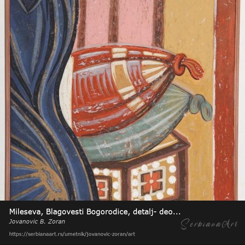 Manastir Mileševa (1222-1227.god.), kompozicija - Blagovesti Bogorodice, detalj: Deo Bogorodičinog trona sa jastucima, kopija freske. Slika je trenutno na prodaju.