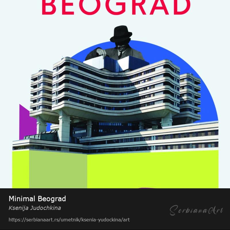 Београдски принт у колажном стилу. Одштампан је на висококвалитетном текстурираном папиру (300 г/м², налик на акварел папир), упакован у пластичну кесу. Могућа је достава по Београду или слање поштом по Србији и у друге земље. Боја позадине може бити измењена на захтев.