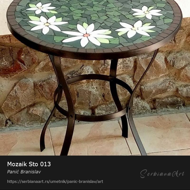 Ovaj mozaik sto napravljen je od keramickih plocica i zaliven cementom. Postolje i ram su napravljeni od metala.Podelite i promovišite ovo delo