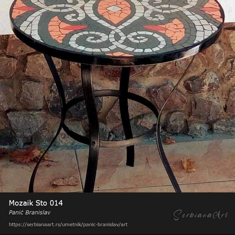 Ovaj mozaik sto napravljen je od keramickih plocica i zaliven cementom. Postolje i ram su napravljeni od metala od metala.Podelite i promovišite ovo delo