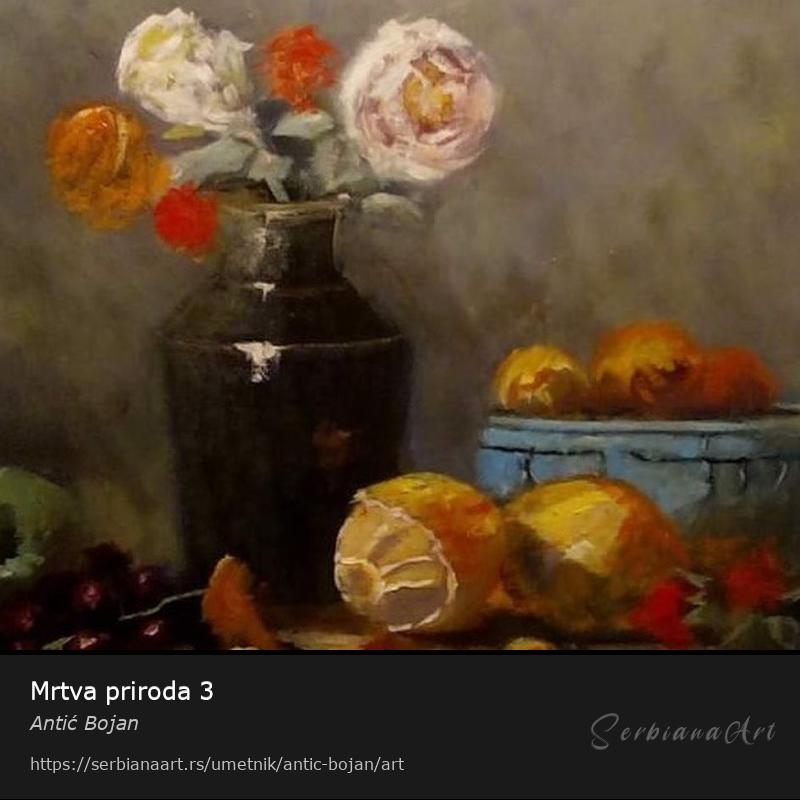 Učio sam slikarstvo u ateljeu svoga oca, poznatog akademskog slikara, Radomira Antića. Slikarstvom se bavim profesionalno, a moje slike se nalaze u mnogim domovima i poslovnim prostorima u zemlji i inostranstvu.Umetnik Antić Bojan (Srbija).
