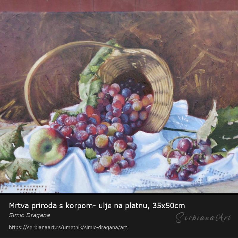 Mrtva priroda s korpom- ulje na platnu, 35x50cm