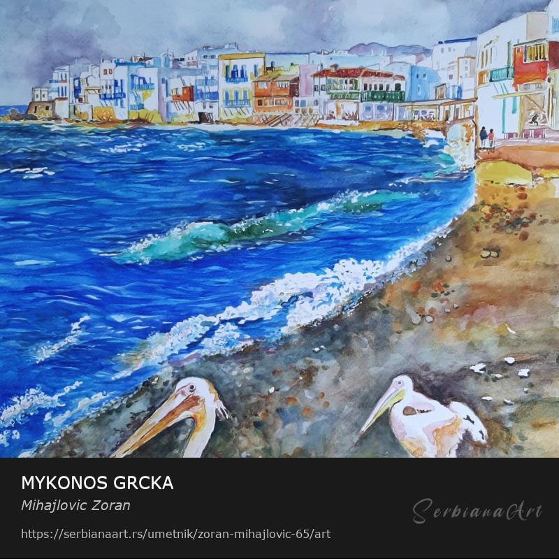 Миконос, бисер грчких острва - Мала Венеција. Оригинална акварелна уметност на квалитетном акварел папиру. Уз рад се добија сертификат о аутентичности. Хвала вам што пратите моје радове, контактирајте ме за све што вас занима.