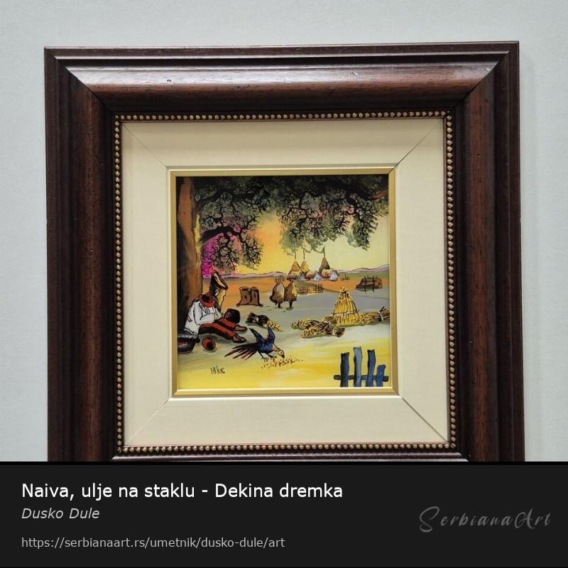 Naiva, ulje na staklu Dekina dremka. Prelepo umetnicko delo. Slika je uramljena u jako lep ram, dimenzije slike sa ramom 34 x 34. Privatna kolekcija.
