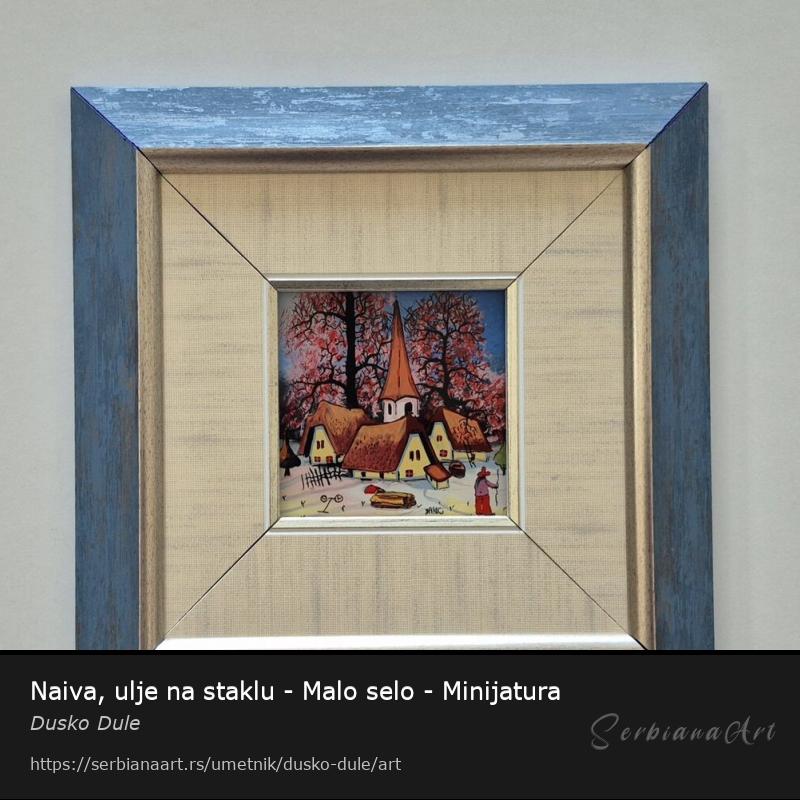 Naiva, ulje na staklu - Malo selo - Minijatura
