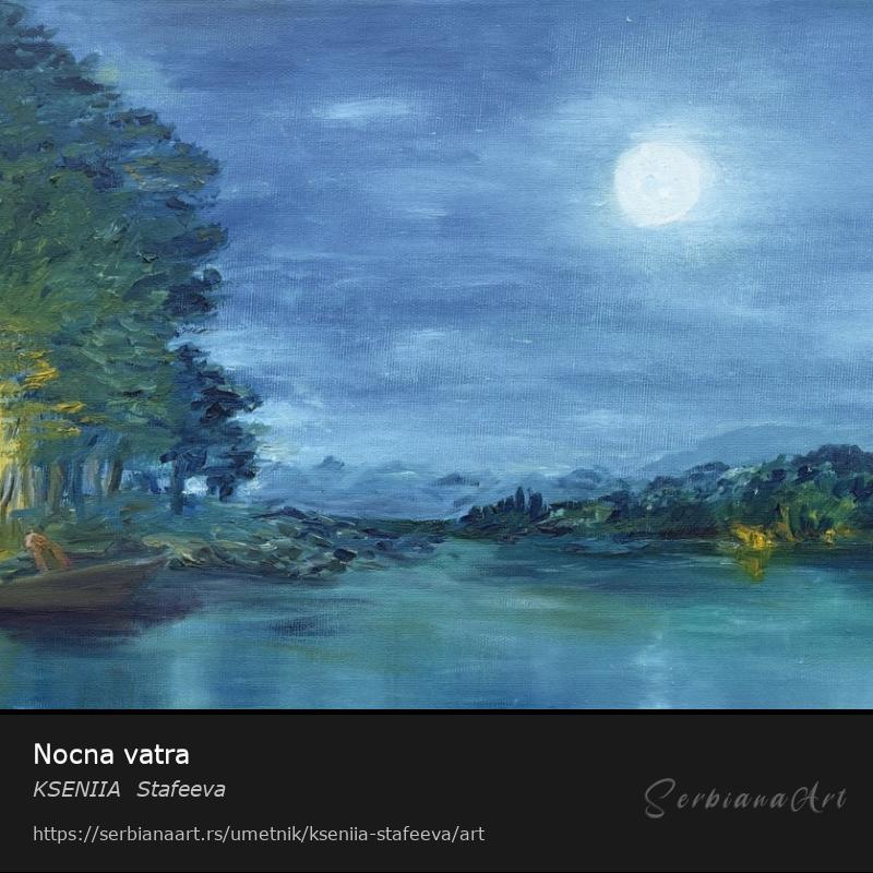 Слика је написана на основу сећања из детињства. Сезона ноћног риболова. Река је веома дубока, ноћи су хладне. Увек сам био тај који је гледао ватру рибара и слушао њихове приче.