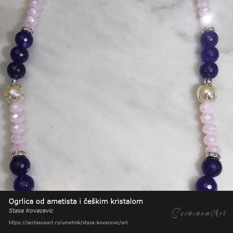 Ručno izrađena ogrlica od ametista, češkog kristala, bisera, mesečev kamen sa dodacima kopča od nerđajućeg čelika.