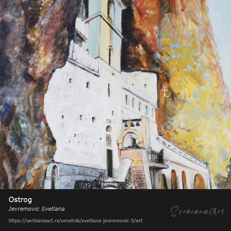 Manastir Ostrog je kao stalna inspiracija uvek prisutna i posebna i ujutro i preko dana i uveče... Ovo je jedna impresija nastala u suton , kroz igru svjetlosti i boje ostaje pamćenje o jednom neponovljivom utisku .
