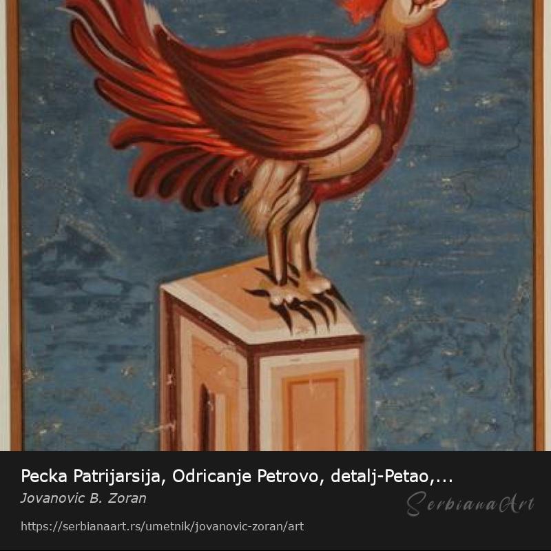 Pećka Patrijaršija, crkva Svetih Apostola (oko 1300.god.), kompozicija Odricanje Petrovo, detalj: Petao, kopija freske. Slika je trenutno na prodaju.