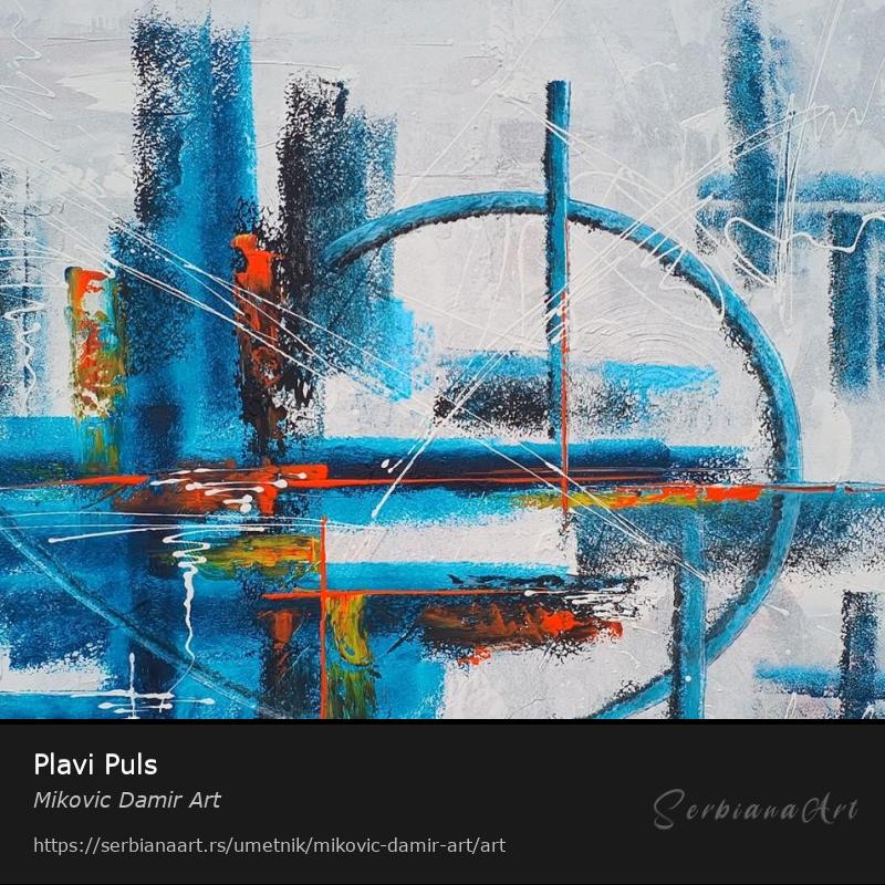Ova apstraktna slika prikazuje sklad između organizovanih i spontanih elemenata. Plave nijanse predstavljaju mir i stabilnost, dok narandžasti i crveni detalji donose eksploziju dinamike i života. Linije i geometrijske forme povezuju elemente slike u jedinstvenu celinu, dok igra između svetlosti i senke daje osećaj pokreta i napetosti. Slika poziva posmatrača da istraži slojeve značenja, kontraste i ritam unutar dela.