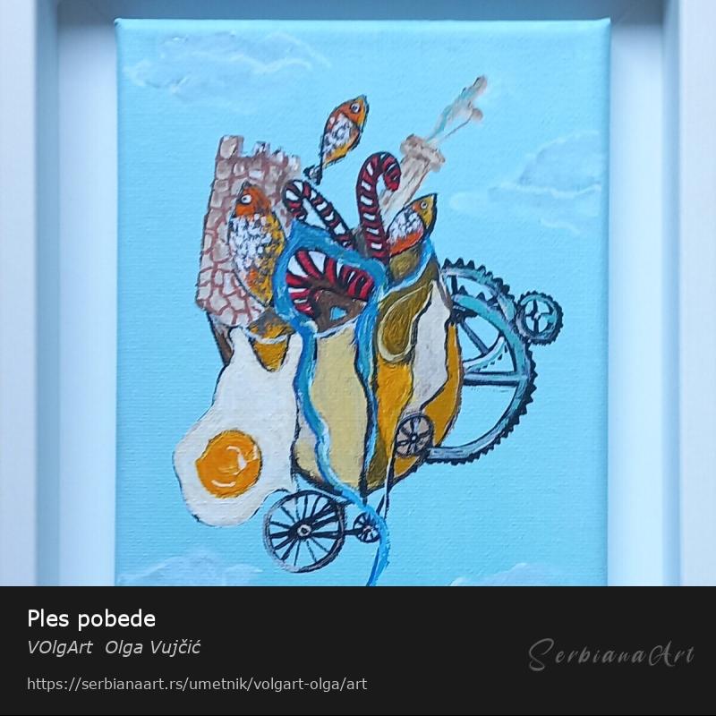 U ovom delu, nebo predstavlja prostor beskonačnih mogućnosti, dok točak od bicikla simbolizuje cikluse života, stalno kretanje i napredak. Pobednik koji simbolizuje težnju za slobodom i nezavisnošću, jaje na oko koje može predstavljati rađanje novih ideja i perspektiva, lilhipop lizalica donosi osećaj detinjstva i nostalgije, kula voda simboliše stabilnost i oslonac, dok ribice u vazduhu oslikavaju slobodu i fluidnost misli, koje plove van granica realnosti. Ova kombinacija predmeta poziva posmatrača da razmišlja o balansu između slobode, stabilnosti, i onih sitnih radosti koje život čine magičnim.