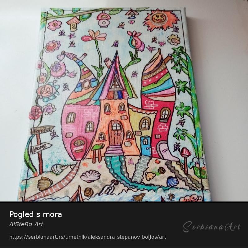 Slika je urađena kombinovanom akril tehnikom.