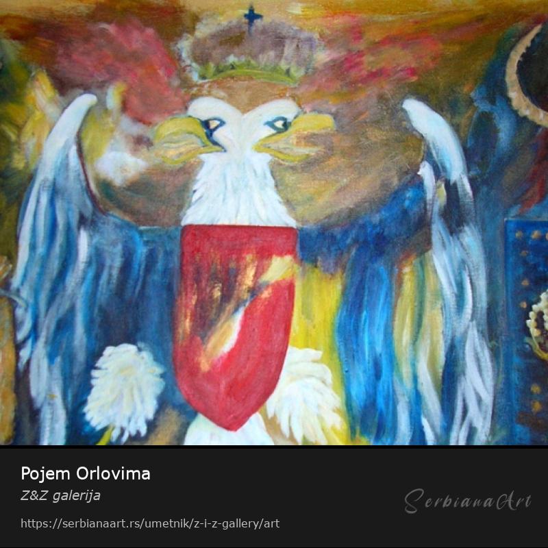Звездана Елезовић, Појем Орловима, акрил на платну, урамљено, 80cm x 50cm без pама. Слика је била изложена на изложби у ШвајцарскојPodelite i promovišite ovo delo