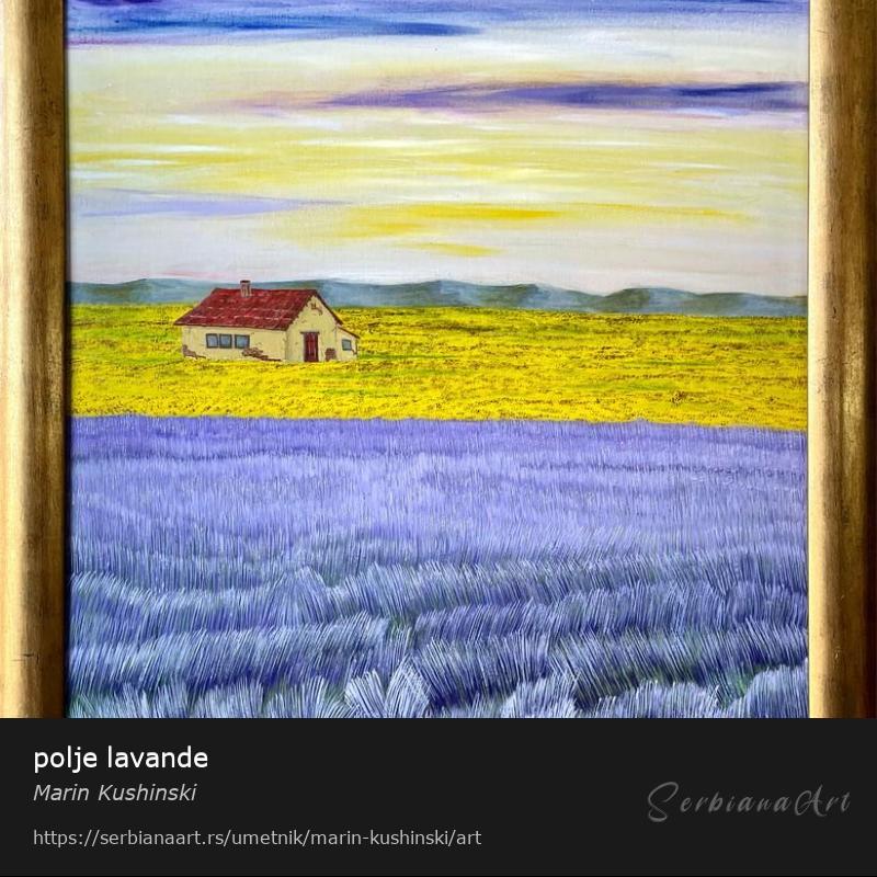 Polje lavande prostire se u širokom prostoru, prekriveno bogatim ljubičastim cvetovima koji se talasaju na laganom vetru. Miris lavande ispunjava vazduh, stvarajući opuštajuću i spokojnu atmosferu. U daljini, usred polja, nalazi se mala seoska kućica, jednostavna, ali šarmantna. Krov je prekriven crvenim crepovima, a prozori su obrubljeni drvenim okvirima. Okolo kuće raste lavanda, njeni cvetovi okružuju kućicu kao prirodni okvir, čineći scenu još pitomijom. Polje se prostire do horizonta, a nebo je vedro, plavetnilo koje se savršeno uklapa u lepotu lavande i mira ovog mesta.