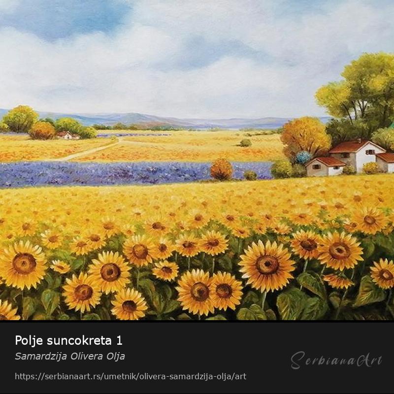 Zivim i radim u Novom Sadu. Studirala sam Gradjevinski fakultet, ali je slikanje oduvek bilo moj hobi, a aktivno slikam od 1995. godine. Imala sam tri samostalne izlozbe i ucestvovala sam na vise kolektivnih. Sve slike su radjene tehnikom ulje na platnu. Moje radove mozete videti na: olja-art.comSlike radim i po narudzbini, tako da mozete sami odabrati motiv i velicinu slike. Slike ne saljem u inostranstvo.Umetnik Samardzija Olivera Olja (Srbija).