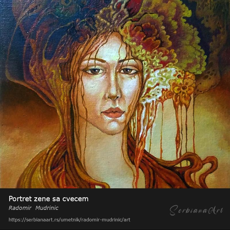 Портрет жене са цвећем је уље на касираном платну инспирисано цветним мотивом.