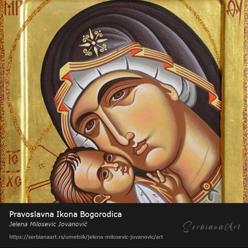 Ikona Bogorodica, 35x25cm, lipova daska ,jajcana tempera, 22 karata zlato.Podelite i promovišite ovo delo