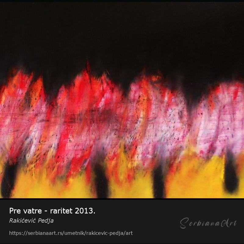 RARITET Jedina slika koja je ostala u vlasništvu autora iz ciklusa slika ``Cerebrum forest`` nastalih 2013. godine, zato je i cena fixna. Slika PRE VATRE naslikana na 3D blind ramu, uljanim bojama Royal Talens Van Gogh, i uramljena u pro crni ram C48, širine 2 cm i 4 cm dubine.Podelite i promovišite ovo delo