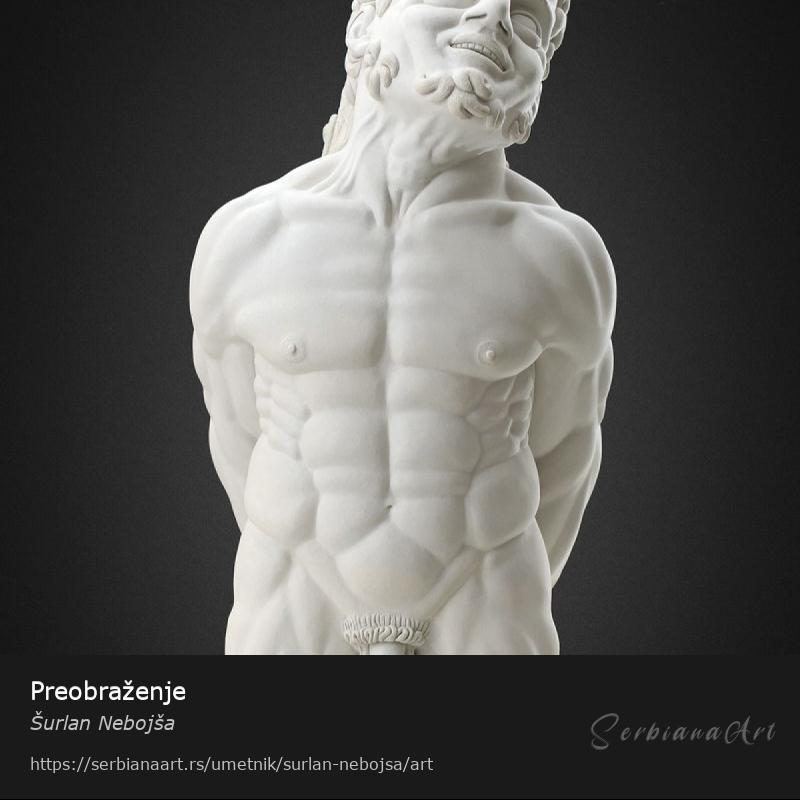 Naziv skulpture: Preobraženje Materijal: Glina Dimenzije: 60 x 28 x 28,7 cm Skulptura je izrađena od gline, osušena bez pečenja i nije otporna na vlagu.Podelite i promovišite ovo delo