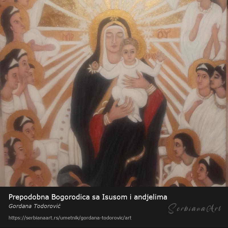 Slika je radjena na platnu kombinovanom tehnikom inspirisana religioznom temom.Godina 2024 ikonopisac i slikar Gordana Todorovic.Dodat je zlatni nanos i deluje lepse u prostoru.Oplemenice svaku sredinu.