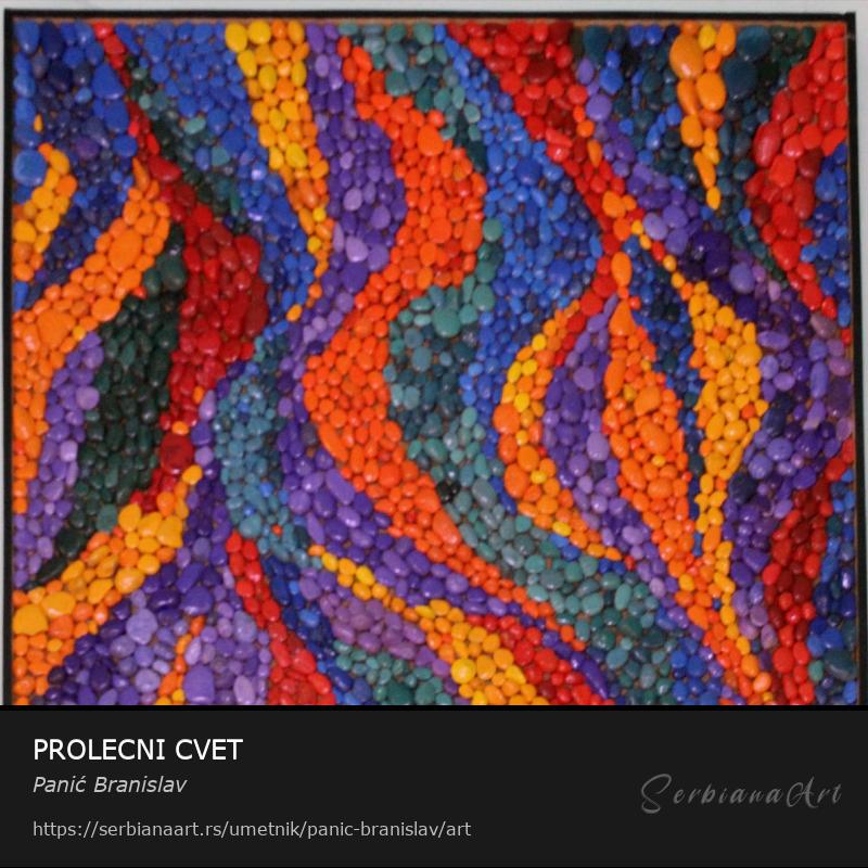 Radjen je tehnikom lepljenja sitnih obojenih oblutaka na sper plocu.Podelite i promovišite ovo delo