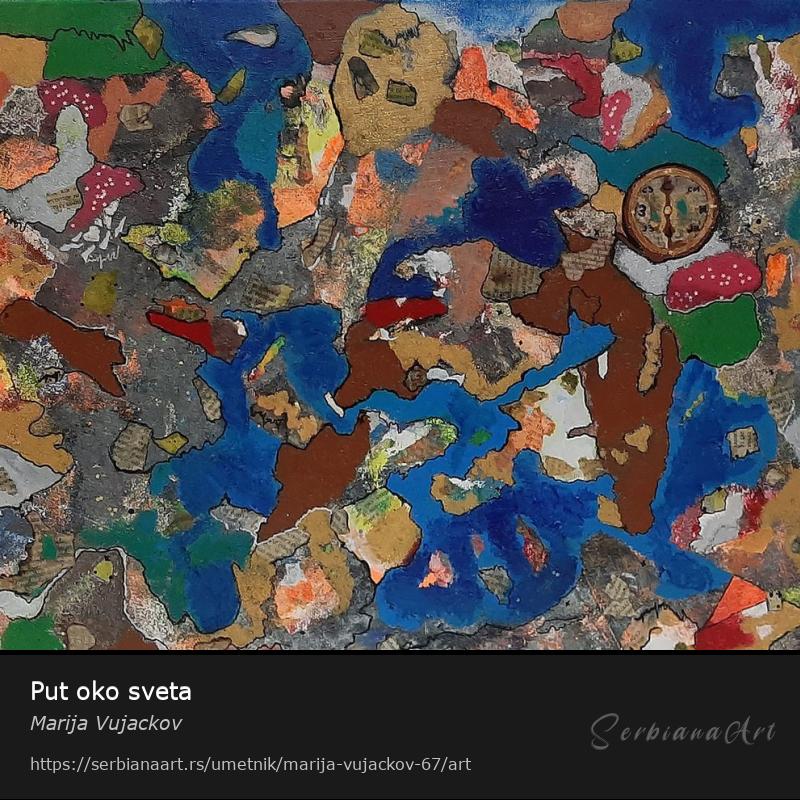 Akril / kolaž na platnu. Uramljena. Pređena zaštitnim sprej lakom.Podelite i promovišite ovo delo