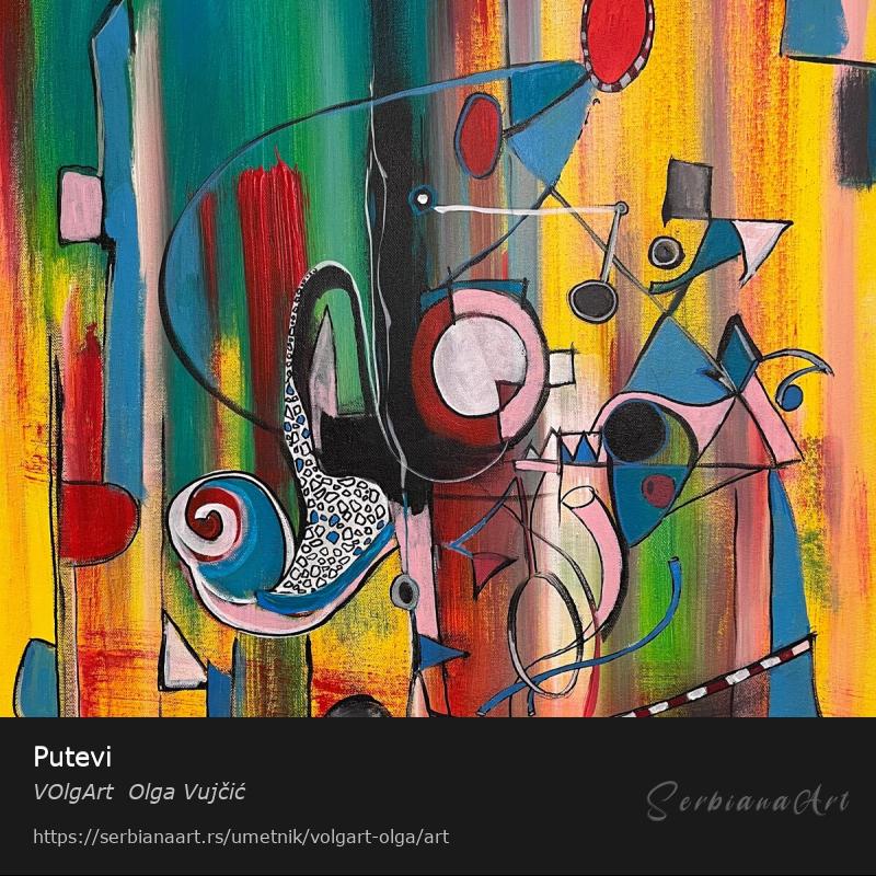 Putevi" je moje umetničko delo koje istražuje apstraktnu lepotu kroz dominaciju žute i plave boje. Tanke linije poput putokaza vode posmatrača kroz ovaj vizuelni lavirint, simbolizujući životne staze i izazove. Svaka linija nosi svoju priču, povezujući se sa različitim iskustvima i izborima. Ova slika poziva na introspekciju, istražujući puteve koje biramo u životu i kako oni oblikuju našu jedinstvenu priču.