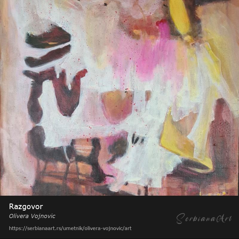 Olivera Vojnovic zivi i radi u Beogradu .Slobodni umetnik slika intuitivno i apstraktno figurativno sa dominirajucim koloritom.Akrilno slikanje na platnu uz kombinovanu tehniku.Autor je dve samostalne izlozbe u Beogradu.Za slike kontaktirajte umetnicu.Umetnik Olivera Vojnovic (Srbija).